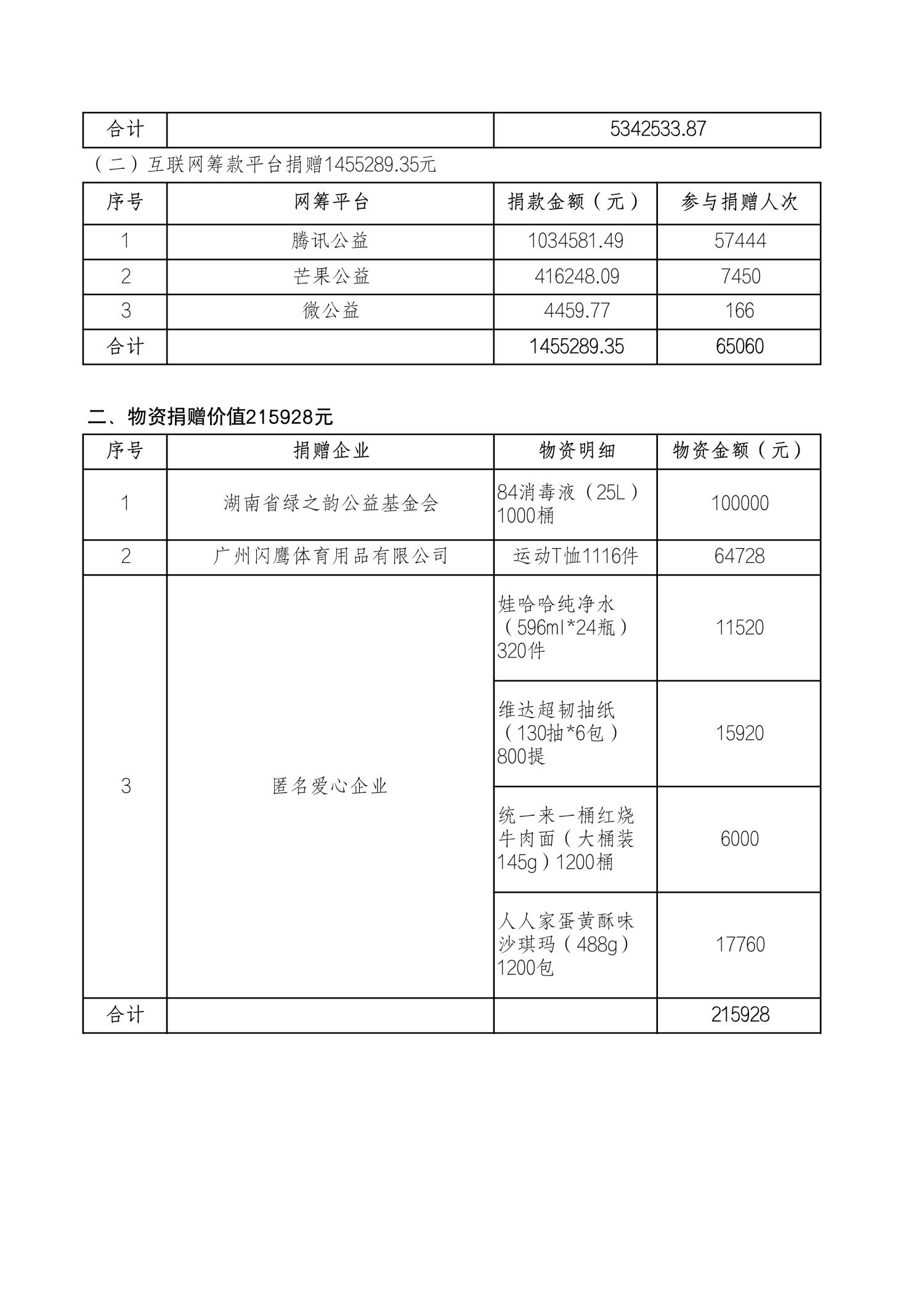 湖南省慈善总会2024年“驰援湖南·抗洪救灾”爱心捐赠公示(三)